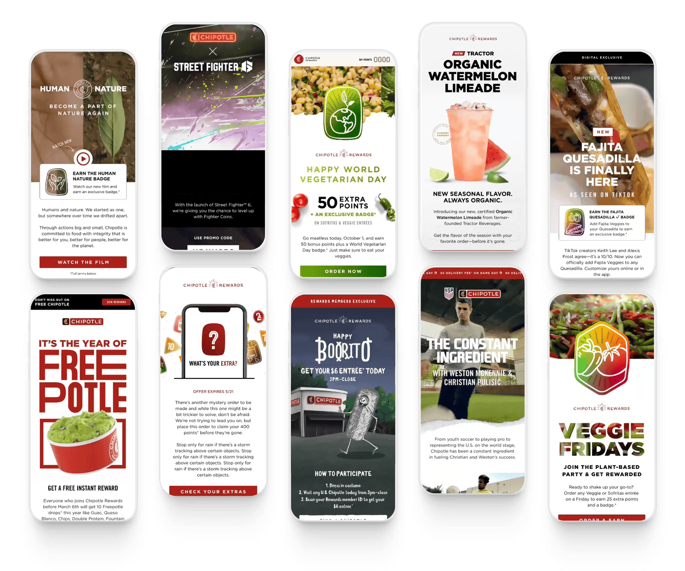 As a Senior Designer on the Chipotle design team at GALE, I helped conceptualize and design a visual system for the program and executed numerous CRM campaigns over two years.