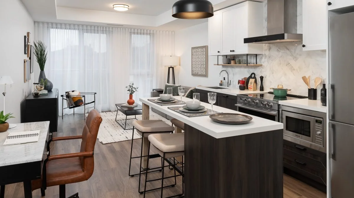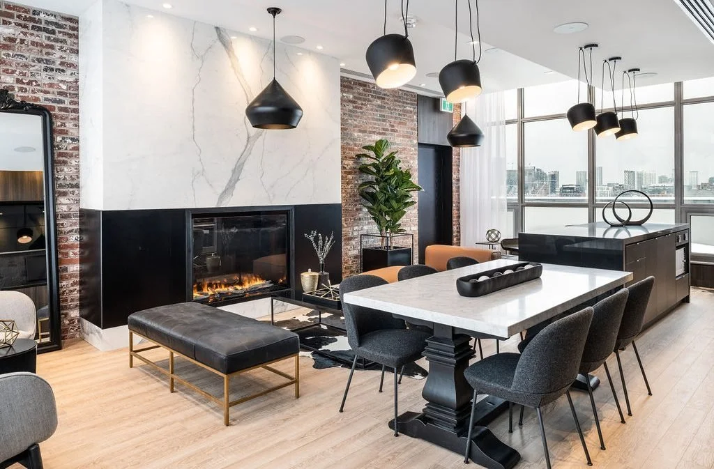 Strada is an 8-storey mixed-use rental residential development with retail at street level, located in Toronto’s Little Italy neighbourhood. We chose the name Strada to reflect the vibrancy and energy of College Street itself. This boutique rental residence looks and feels the part: tufted leather sofas and rich wood details, a bustling cafe right in the lobby, and a hidden speakeasy tucked away from it all.