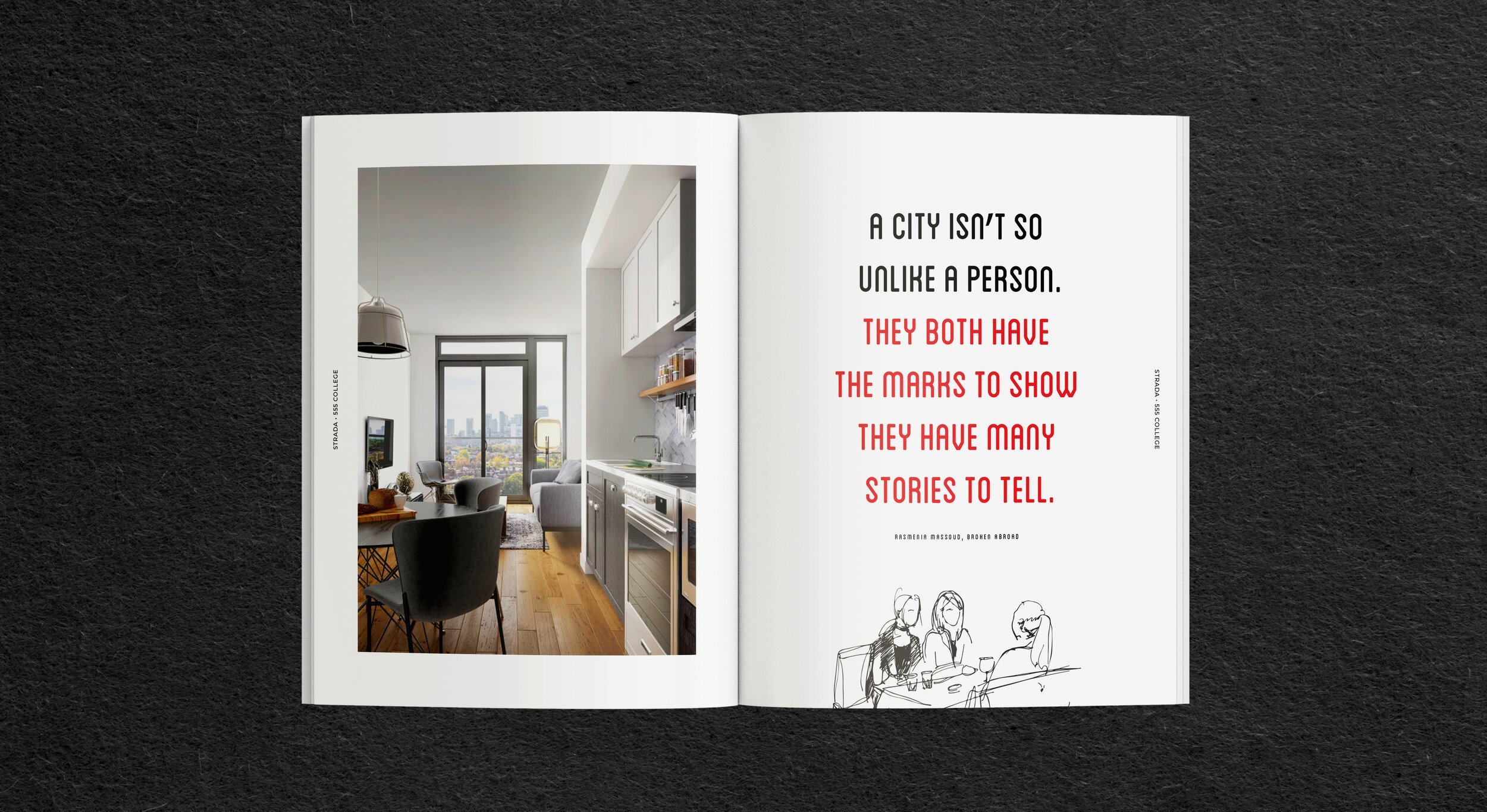 RioCan Living approached us with the task of defining the look & feel of Strada that communicates that the brand is lively, stylish, and cosmopolitan. The goal was to document this through a brand guidelines that was inspired by the Italian and contemporary neighbourhood where future residents will find themselves.
